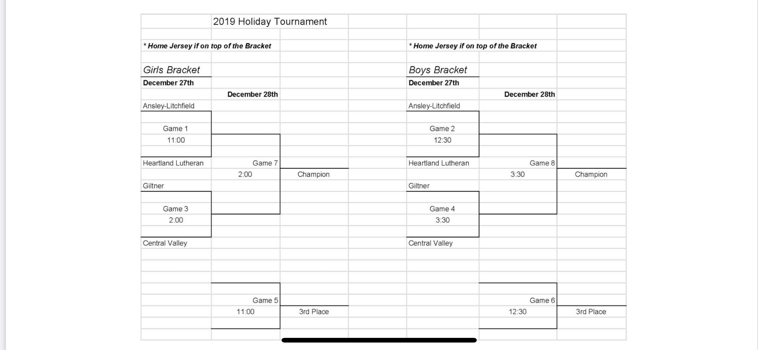 Holiday Tourney Bracket